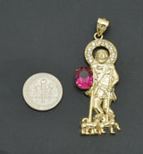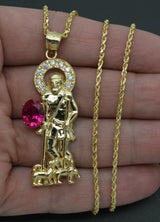 Real 10K Yellow Gold St. Lazarus Religious CZ Pendant 5.6 gr + Chain 16"-24"