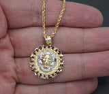Real 10k Yellow Solid Gold Medallion Cuban Lion Head Pendant+ Rope Chain 16"-24"