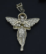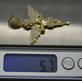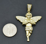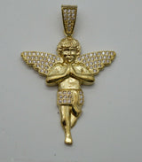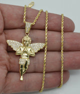 Real 10K Yellow Gold CZ Praying Angel Charm Pendant+Chain