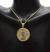 Real 10k Yellow Solid Gold Jesus Saint Lazar Medallion Pendant+Rope Chain 16-24"