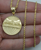 Real 10K Yellow Solid Gold Last Supper Pendant+Chain 16"-24"
