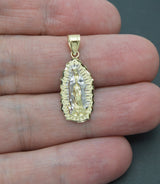 Show your faith in style with this beautiful Medallion Lady Guadalupe Virgin Mary Pendant. Crafted from real 10K yellow-white gold, this pendant weighs 1.2 grams and is the perfect way to express divine love. Adorned with a sophisticated design, it makes for a meaningful and precious addition to any jewelry collection. Let your faith shine with this stunning pendant!