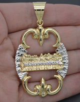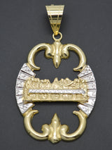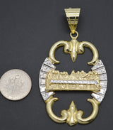 Real 10K Yellow White Gold Two-Tone Last Supper Horn Diamond Cut Pendant 7.1gr