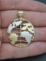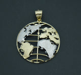 Real 10K Yellow White Gold Two-Tone Textured World Charm Pendant 4.2gram
