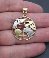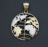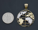 Real 10K Yellow White Gold World Charm Two-Tone Textured Pendant 3.2gram