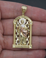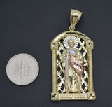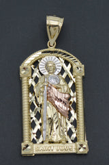 Real Solid 10K Tricolor Gold Saint Jude Medallion Diamond Cut Pendant 9.6gr