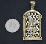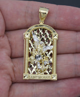 Real Solid 10K Yellow White Gold Shiny Diamond Cut Saint Michael Pendant 9.1gr
