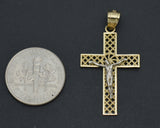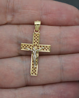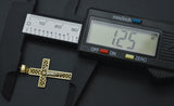 Real Solid 10K Yellow White Gold Shiny Jesus Cross Diamond Cut Pendant 1.3gr