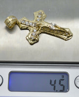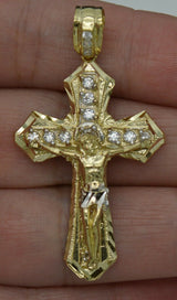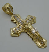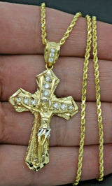 Real 10k Yellow Gold CZ Jesus Christ Crucifix Cross Pendant + Chain