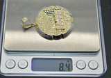 Real Solid 10K Yellow Gold Round Supper Diamond Medallion Charm Pendant 8.4gr