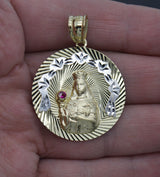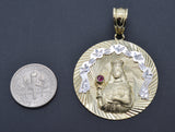Real 10K Solid Yellow Gold Round Virgin Mary Diamond-Cut Medallion Pendant 8.6gr