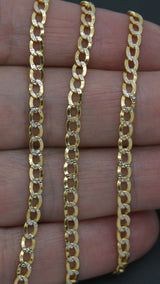 14k Real Yellow Gold 3.5mm Diamond Cut Cuban Curb Link Chain 18"-24"