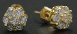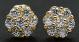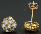 1.00ct cz Floral Stud Earrings 14k Solid Yellow Gold