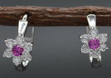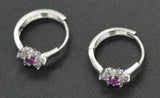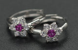 14K Solid White Gold 11mm Ruby Cubic Zirconia CZ Flower Huggie Earrings