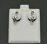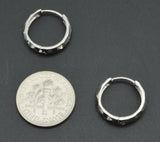 14K Solid White Gold 15mm Faceted Huggie Hoop Earrings