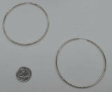 14k Solid White Gold big Large Endless hoop Earrings. 60mm x 2MM