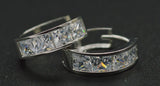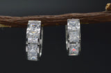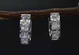 14K Solid White Gold Created Diamond Princess Cut (CZ) Huggie Earrings