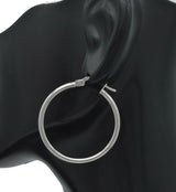 14k Solid White Gold Large Plain Round hoop Earrings. 1 1/4'' 30mm x2MM 1.4GR
