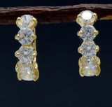 14K Solid Yellow Gold Created Diamond (CZ) Huggie Earrings