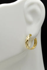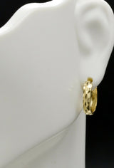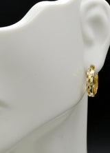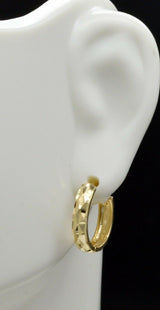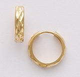 14K Solid Yellow Gold 14mm Faceted Huggie Hoop Earrings