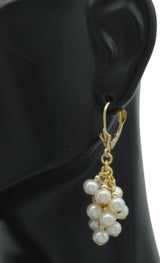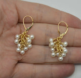 14K Solid Yellow Gold Lever-Back Grape Cultured Pearl Drop Dangle Earrings