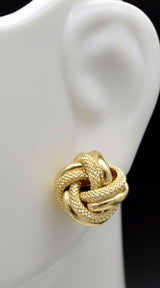 Italian 11mm 14k Yellow Soild Gold Love Knot Textured & polished stud Earrings
