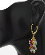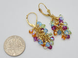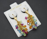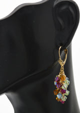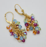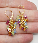 Real 14k Solid Gold Leverback Made/w Multicolor Swarovski Crystal Grape Earrings