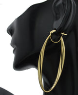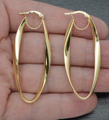 Real 14K Solid Yellow Gold Shiny 55.8mm Twisted Oval Hinged Hoop Earrings