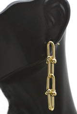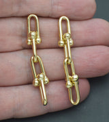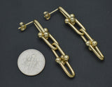 Real 14K Solid Yellow Gold Shiny Chain Link Hardware Drop Dangle Earrings 5.6gr
