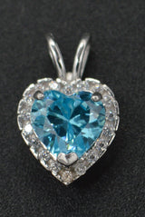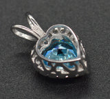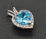PM12 1.25ct Created Diamond Blue Topaz Heart Cut Pendant 14k Soild White Gold