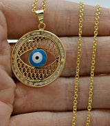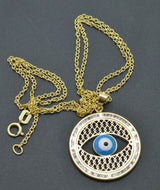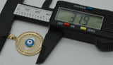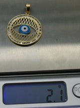 14k Solid Gold CZ Round Evil Eye Luck Enamel Finish Charm Pendant +18 Chain