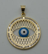 14k Solid Gold Round Evil Eye Luck enamel finish CZ Charm Pendant, is a meaningful gift for a lady on special day.