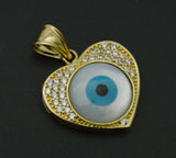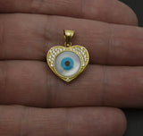 14k Solid Gold Evil Eye Luck Mother-Of-Pearl Charm cz Pendant +18 Chain