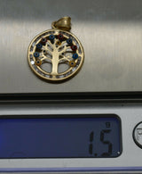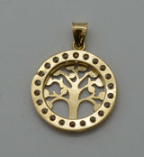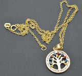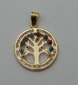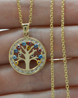 14K Solid Gold Round Evil Eye Tree Of Life Charm Pendant +18" Chain