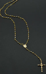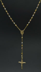 14k Solid Tri-Color Gold Rosary virgin Mary Jesus Cross Necklace 7.3 gr