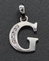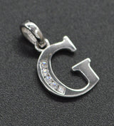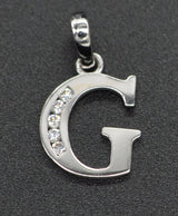 14K Solid White Gold Created Diamond Initial Letter G Pendent