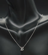 14K Solid White Gold Initial 16" Letter ( B ) Cable Chain Necklace