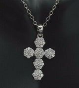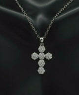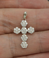 14K Solid White Gold Round Created Diamond Cross .50Ct Pendant