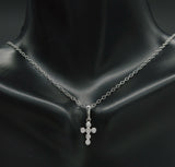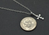 14K Solid White Gold Round Created Diamond Cross Pendant