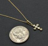 14K Solid Yellow Gold Created Diamond Cross Pendant + 18'' Cable Chain