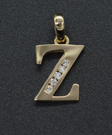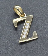 14K Solid Yellow Gold Created Diamond Initial Letter Z Pendent