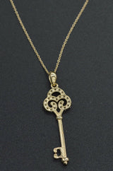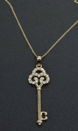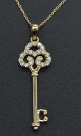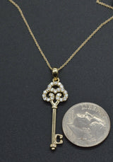 14K Solid Yellow Gold Created Diamonds Key Pendant Charm