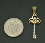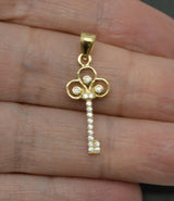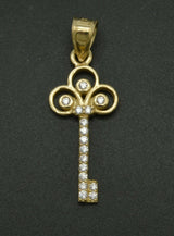 14K Solid Yellow Gold CZ Key Shape Pendant