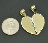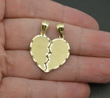 14K Solid Yellow Gold Engravable Broken Heart Pendant Charm 2.7gr