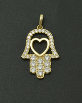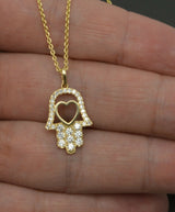 14K Solid Yellow Gold Hamsa cz Pendant Good Luck Charm +18 Chain
