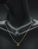 14K Solid Yellow Gold Initial 16" Letter ( H ) Cable Chain Necklace