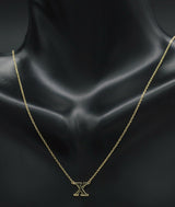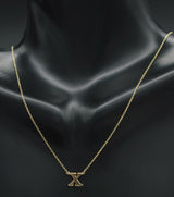14K Solid Yellow Gold Initial 16" Letter ( X ) Cable Chain Necklace