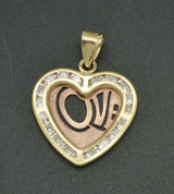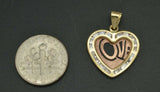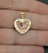 14K Solid Yellow & Rose Gold CZ "LOVE" Heart Shape Pendant