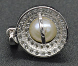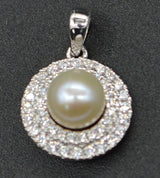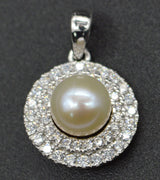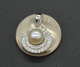14k White solid Gold Round Cut Halo Culture pearl Created Diamond Pendant