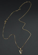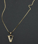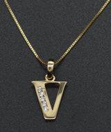 14K Yellow Solid Gold Created Diamond Initial Letter V + 18" Chain Necklace